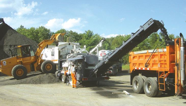 In order to expand this programme, Maine’s Department of Transport, in association with Wirtgen America Inc., set up a demonstration project to recycle RAP and stabilize it with foamed bitumen using a Wirtgen KMA 200 cold-mix plant. The objectives of the demonstration were: to evaluate the versatility and mobility of the KMA 200 plant; to evaluate foam-mix RAP as a flexible base material; and to evaluate the feasibility of storing foam mix RAP in a stockpile.