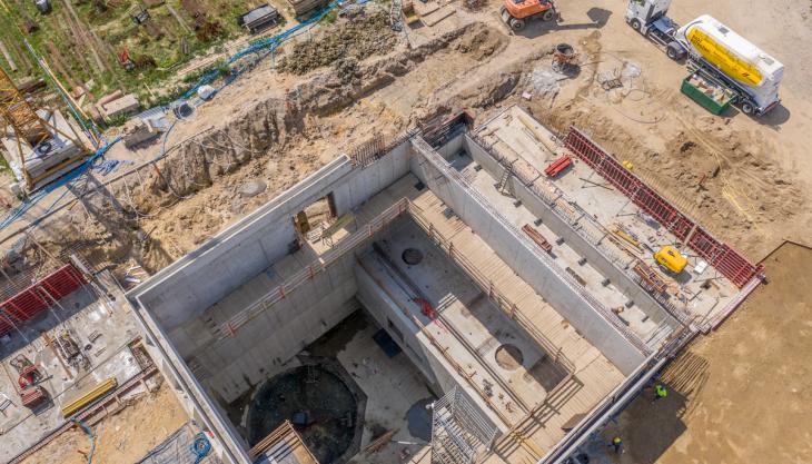 Using the special slag-based cement that works well for the construction of concrete elements and structures in hydrotechnical construction, project contractors Budokrusz SA are able to produce two classes of structural concrete for the construction of the diving pool’s foundation plate.