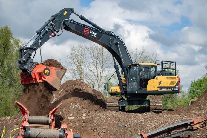 With a storage capacity of up to 75,000 tonnes per year, the waste facility recycles more than 95% of the material collected from sites throughout the region. The HX300AL excavator is equipped with a 2.5m wide Allu screening bucket, which is used to feed a mobile crusher on site. True Group will also make the new machine available for plant hire, and it will be offered with a range of specialist attachments, including hydraulic breakers, mulchers, shears, and vibrating plates.