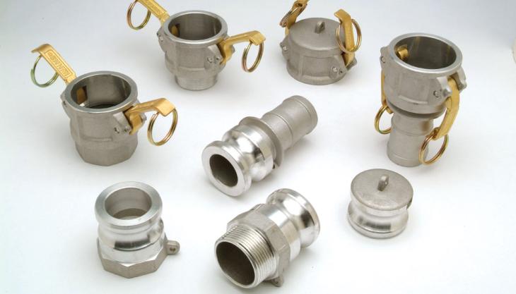 Manufactured from aluminium, brass or 316 stainless steel, the leak-proof couplings, available in a range of sizes (from 0.5in to 6in), handle working pressures of up to 250psi (18 bar). A lightweight polyglass option offers excellent chemical resistance.