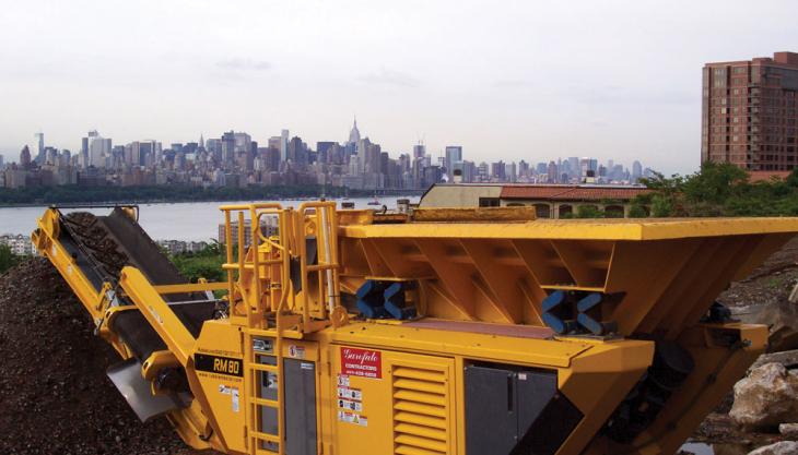 DAG fill a niche in the New York recycling/demolition market, specializing in small-scale but profitable local crushing contracts lasting from just a few days to a couple of weeks, which could not be carried out economically by their larger competitors. On this particular contract, DAG’s RM80 mobile impactor completed the task in just three days, reducing the concrete, rock and brick rubble to a –40mm material suitable for subsequent reuse on site.