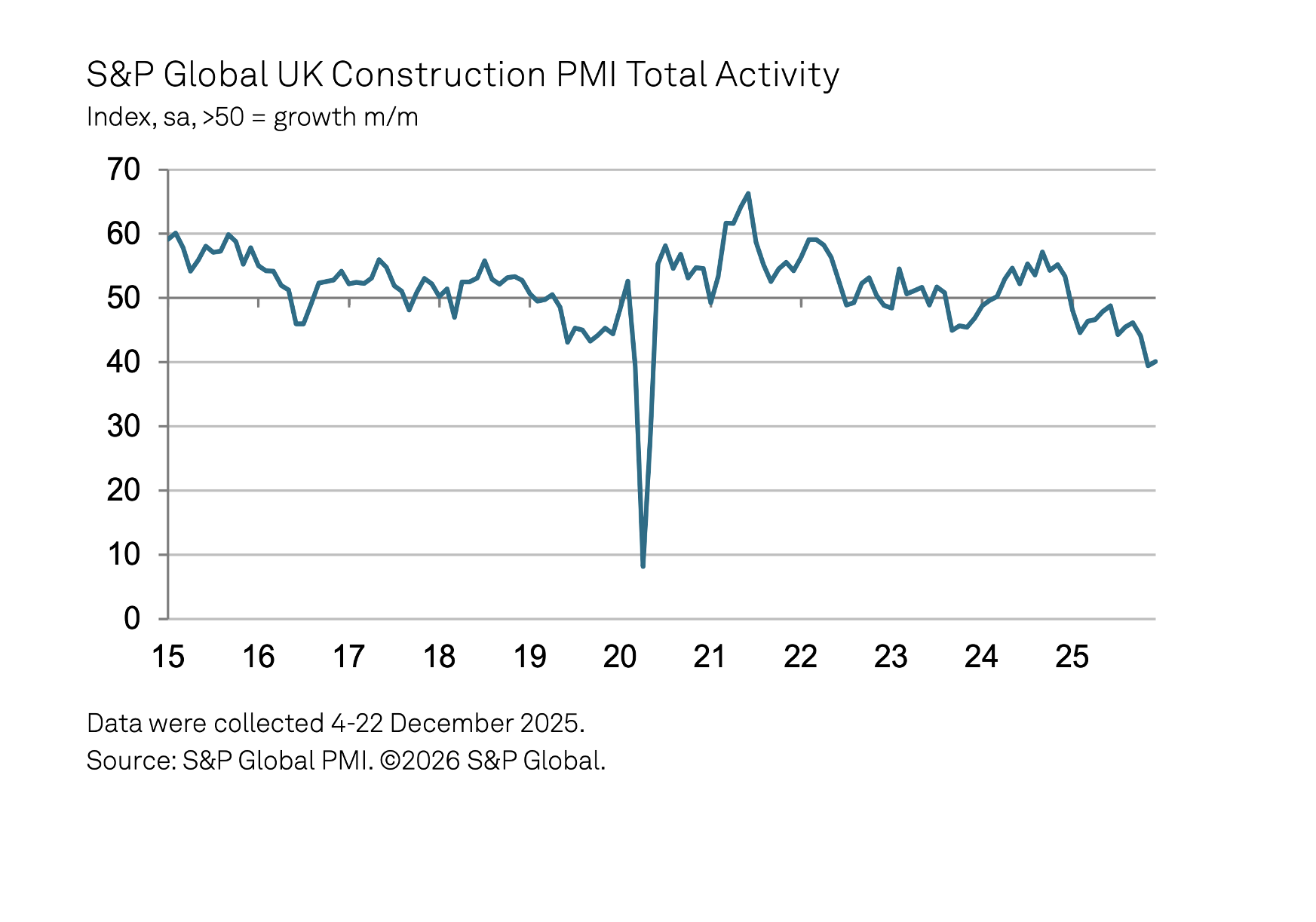 UK construction companies experienced another sharp downturn in business activity and incoming new work at the end of 2025. However, both rates of contraction eased from the five-and-a-half year records seen in November.